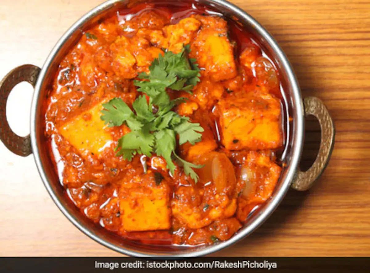 Paneer cooked in a tangy tomato gravy with traditional spices, offering a slightly sharper and richer flavor than butter-based gravies.